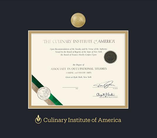 The Culinary Institute of America Diploma (6/25 to Present) Frame with Medallion and Black and Gold Double Mat and Gold Embossing