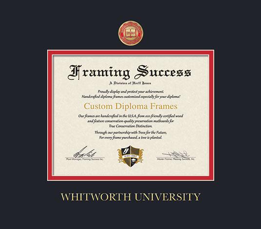 Whitworth University Diploma - Doctorate Frame with Medallion and Black and Red Double Mat and Gold Embossing