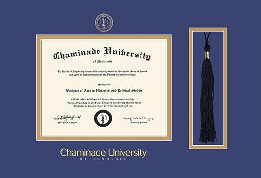 Chaminade University Diploma - BA/MA (10/25 to Present) Frame with Tassel Cut-out and Royal Blue and Gold Double Mat and Gold Embossing
