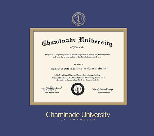 Chaminade University Diploma - BA/MA (10/25 to Present) Frame with Royal Blue and Gold Double Mat and Gold Embossing