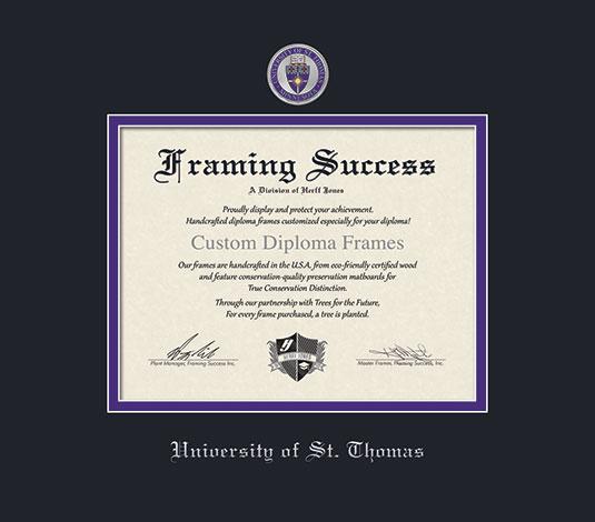 University of St. Thomas in Minnesota Diploma - BA and (2024-Pres) MA Frame with Medallion and Black and Purple Double Mat and Silver Embossing
