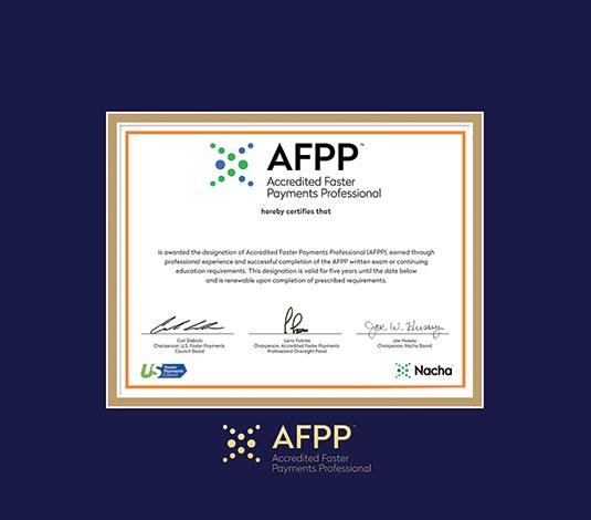 NACHA Certificate - AFPP Frame with Navy Blue and Gold Double Mat and Gold Embossing