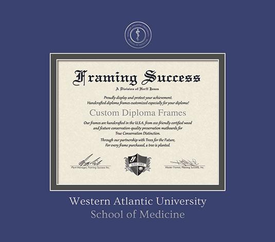 Western Atlantic University School of Medicine Diploma Frame with Royal Blue and Moonrock Double Mat and Silver Embossing