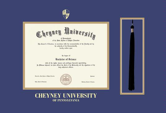 Cheyney University Diploma (7/05 to Present) Frame with Tassel Cut-out and Royal Blue and Gold Double Mat and Gold Embossing