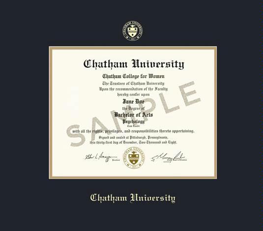 Chatham University Diploma (5/07 to Present) Frame with Black and Gold Double Mat and Gold Embossing