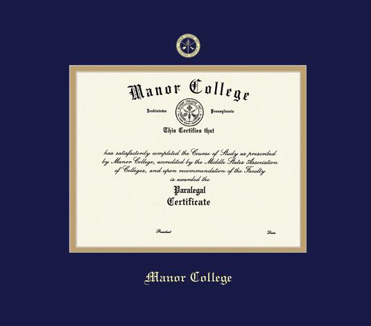 Manor College Diploma - Associates Frame with Navy Blue and Gold Double Mat and Gold Embossing