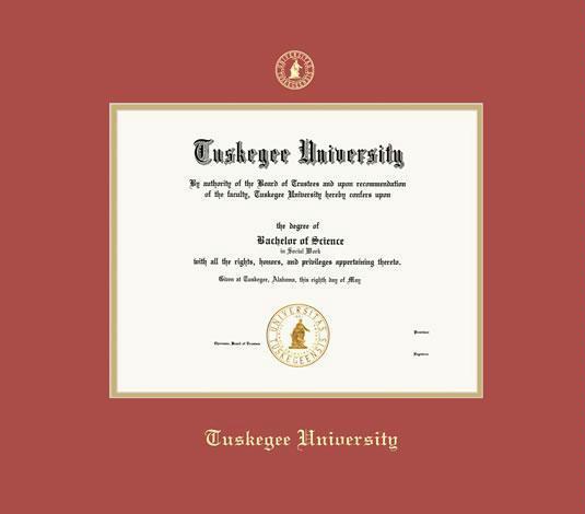 Tuskegee University Diploma Frame with Red and Gold Double Mat and Gold Embossing