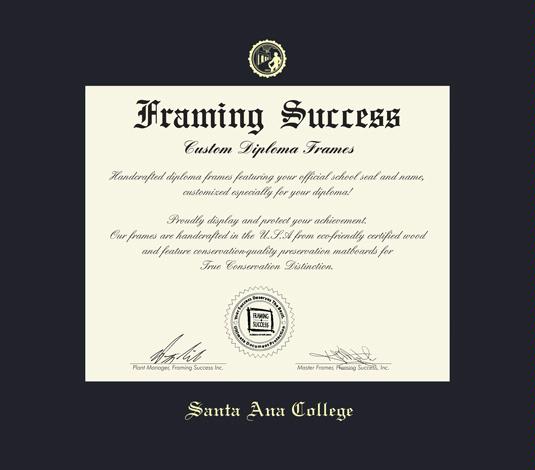 Santa Ana College Diploma Frame with Black Mat and Gold Embossing