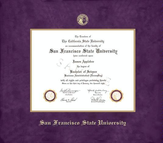 San Francisco State University Diploma (Pre 1/15) Frame with Purple Suede and Gold Double Mat and Gold Embossing