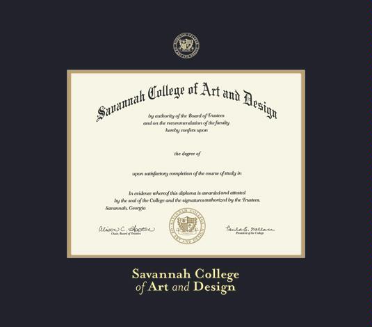 Savannah College of Art and Design Diploma (6/09 to Present) Frame with Black and Gold Double Mat and Gold Embossing