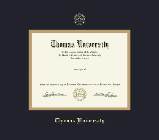 Thomas University Diploma - BA Frame with Black and Gold Double Mat and Gold Embossing