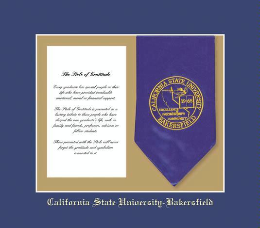 California State University - Bakersfield Stole of Gratitude Frame with Royal Blue and Gold Double Mat and Gold Embossing (Stole Not Included)