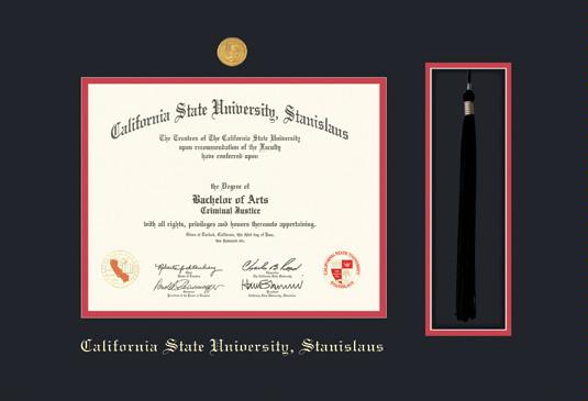 California State University Stanislaus Diploma (3/06 to Present) Frame with Medallion and Tassel Cut-out and Black and Red Double Mat and Gold Embossing