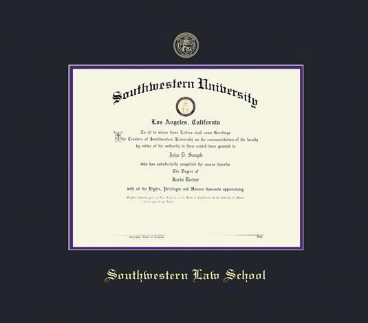 Southwestern Law School Diploma (6/07 to Present) Frame with Black and Purple Double Mat and Gold Embossing