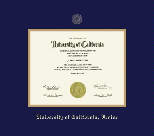 University of California- Irvine Diploma Frame with Navy Blue and Gold Double Mat and Gold Embossing
