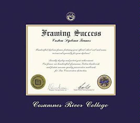 Cosumnes River College Diploma - Certificate (03/05 to Present) Frame with Navy Blue and Gold Double Mat and Gold Embossing