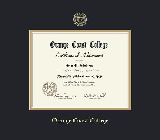 Orange Coast College Certificate - Program Frame with Black and Gold Double Mat and Gold Embossing