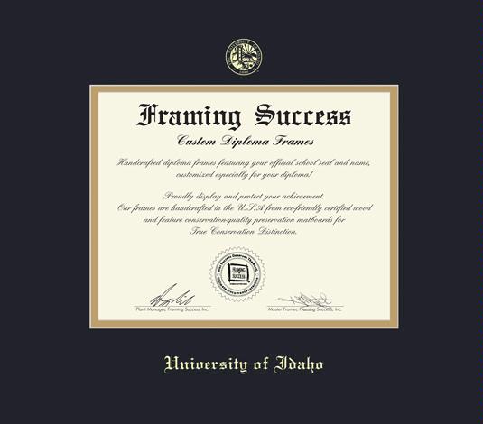 University of Idaho at Idaho State University Diploma Frame with Black and Gold Double Mat and Gold Embossing