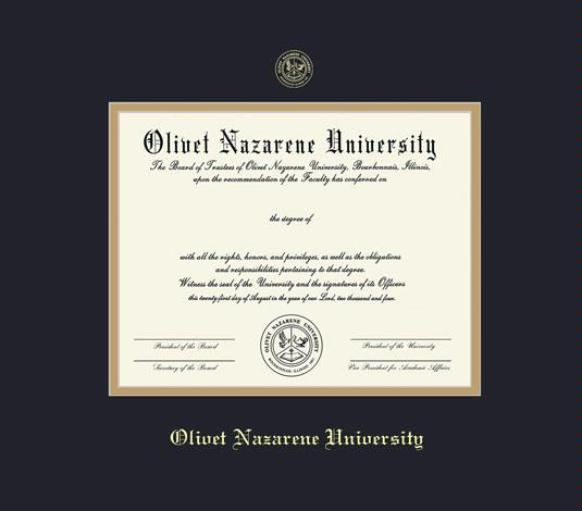 Olivet Nazarene University Diploma - BA Frame with Black and Gold Double Mat and Gold Embossing