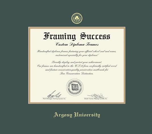 Argosy University Diploma - MA Frame with Green and Gold Double Mat and Gold Embossing