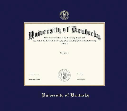 University of Kentucky Diploma - BA and MA (5/07 to Present) Frame with Navy Blue and Gold Double Mat and Gold Embossing