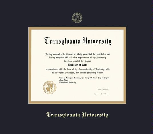 Transylvania University Diploma Frame with Black and Gold Double Mat and Gold Embossing