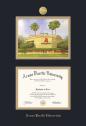 For a single diploma. Frame includes a lithograph print of a campus landmark
