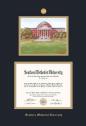 For a single diploma. Frame includes a lithograph print of a campus landmark