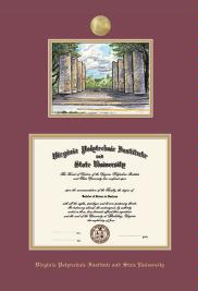 For a single diploma. Frame includes a lithograph print of a campus landmark