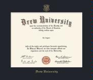 Drew University Diploma Frame with Dark Black Mat and Gold Embossing(Approximate frame size 15 x 17)