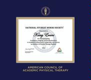 American Council of Academic Physical Therapy Certificate - Honor Society Frame with Navy Blue and Gold Double Mat and Gold Embossing(Approximate frame size 17 x 19 inches)