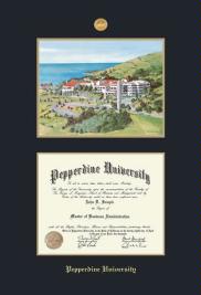 For a single diploma. Frame includes a lithograph print of a campus landmark
