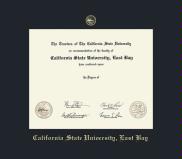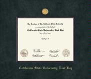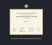 California State University, Hayward/East Bay Diploma - East Bay with Medallion Frame Featuring a Black and Gold Double Mat with Gold Embossing(Approximate frame size 17 x 19 inches)