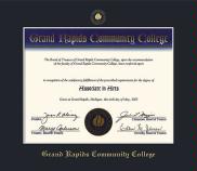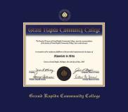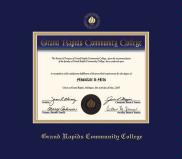 Grand Rapids Community College Diploma (2024 to Present) Frame with Navy Blue and Gold Double Mat and Gold Embossing(Approximate frame size 17 x 19 inches)