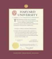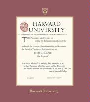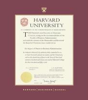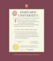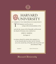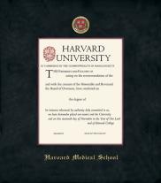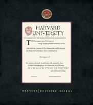 Harvard University Diploma - MA Business Frame with Black Suede and Wood Fillet Double Mat and Colored Medallion(Approximate frame size 19 x 22 inches)