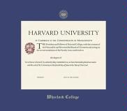 Harvard University Wheelock College Diploma Frame with Royal Blue Mat and Gold Embossing(Approximate frame size 17 x 19 inches)