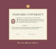 Harvard University Medical School Diploma Frame with Maroon and Gold Double Mat and Gold Embossing(Approximate frame size 19 x 22 inches)