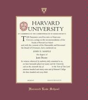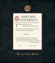 Harvard University Diploma - Law Frame with Black Suede and Wood Fillet Double Mat and Colored Medallion(Approximate frame size 19 x 22 inches)