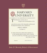 Harvard University John F. Kennedy School of Government Diploma Frame with Maroon and Gold Double Mat and Gold Embossing(Approximate frame size 19 x 22 inches)
