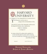 Harvard University Dental Medicine Diploma Frame with Medallion and Maroon and Gold Double Mat and Gold Embossing(Approximate frame size 19 x 22 inches)