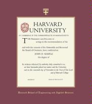 Harvard University Engineering and Applied Sciences Diploma Frame with Maroon and Gold Double Mat and Gold Embossing(Approximate frame size 19 x 22 inches)
