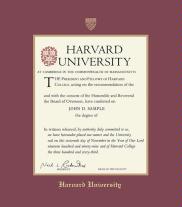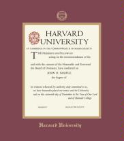 Harvard University Diploma - Undergraduate Frame with Maroon and Gold Double Mat and Gold Embossing(Approximate frame size 17 x 19 inches)