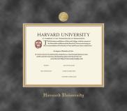 Harvard University Diploma - Graduate Frame with Gold Medallion and Grey Suede and Gold Double Mat and Gold Embossing(Approximate frame size 19 x 22 inches)