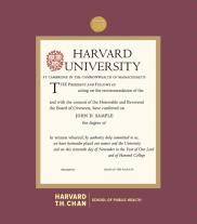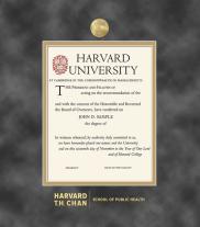 Harvard University Diploma - School of Public Health (3/15 to Present) Frame with Medallion and Maroon and Gold Double Mat and Gold Embossing(Approximate frame size 19 x 22 inches)