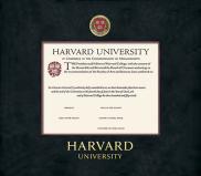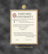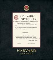 Harvard University Diploma - Graduate Frame with Black Suede and Wood Fillet Double Mat with Colored MEdallion and Gold Embossing(Approximate frame size 19 x 22 inches)