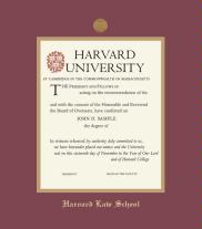 Harvard University Diploma - Law (3/22 to Present) Frame with Medallion and Maroon and Gold Double Mat and Gold Embossing(Approximate frame size 19 x 22 inches)