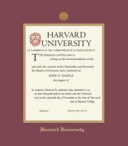 Harvard University Certificate - Business Executive Frame with Medallion and Maroon and Gold Double Mat and Gold Embossing(Approximate frame size 17 x 19 inches)