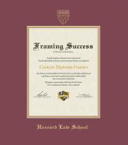 Harvard University School of Design Diploma Frame with Maroon and Gold Double Mat and Gold Embossing(Approximate frame size 19 x 22 inches)