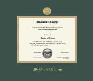 McDaniel College Diploma (5/03 to Present) Frame with Medallion and Green and Gold Double Mat and Gold Embossing(Approximate frame size 19 x 22 inches)