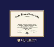 John Brown University Diploma (6/25 to Present) Frame with Navy Blue and Gold Double Mat and Gold Embossing(Approximate frame size 17 x 19 inches)